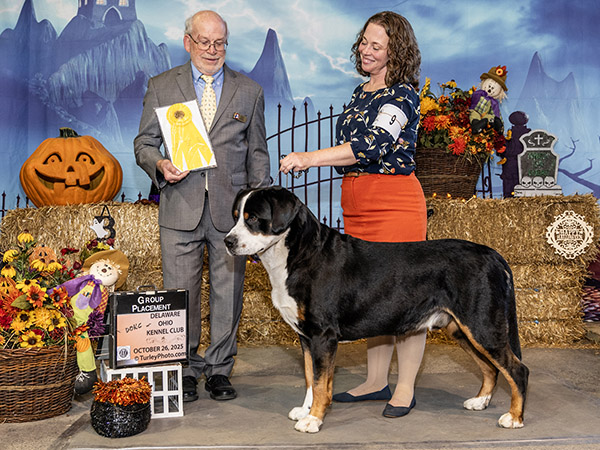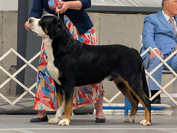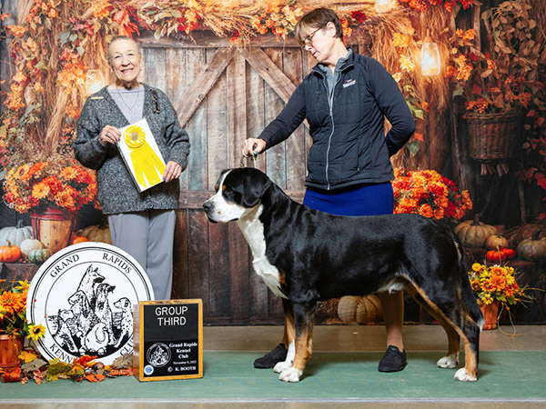 He earned his Novice Draft Dog title at the end of 2025; made it to the very final cut and was part of the group that helped us earn 'Best in Breeder's Class' at the 2025 GSMDCA NS for the third year in a row and also won his mom, Vela, first in a HUGE Brood Bitch class at the NS; earned First Award of Excellence at the AKC National Championship 2025; and, sired his first three litters. Looking forward to what 2026 brings with this big handsome boy!