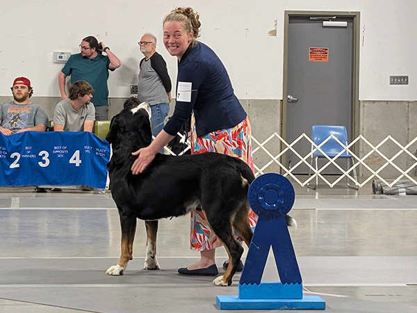 He took a break from being a fancy show dog to spend some time with Dave in IL in Spring 2024 and quickly earned his CD (Novice Obedience) title with 3 AMAZING scores. His sensational performance in the obedience ring earned him '#1 Novice B Obedience GSMD' for 2024 with an average score of 196.17