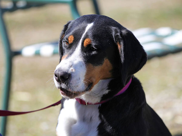 She is a moderate-sized, athletic girl who loves to 'speak her mind' and will have a conversation with you with all sorts of different, weird noises as she talks back to you.
