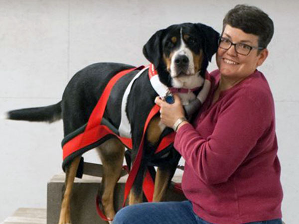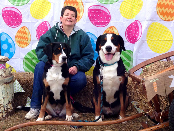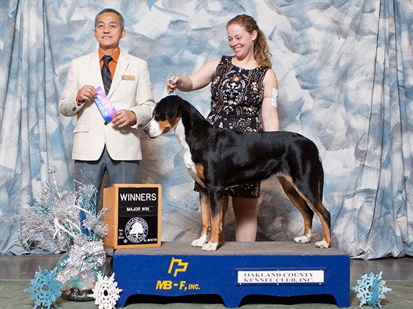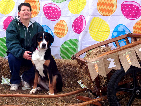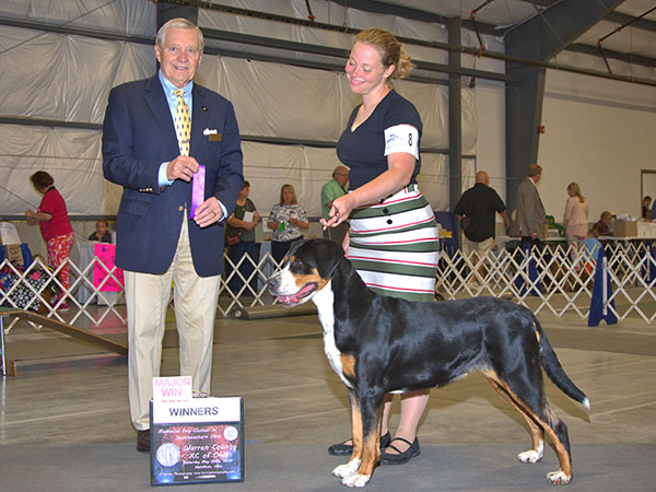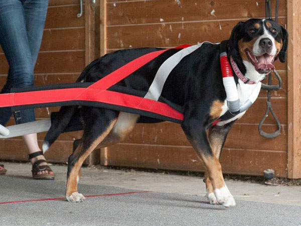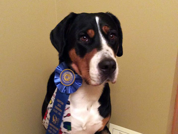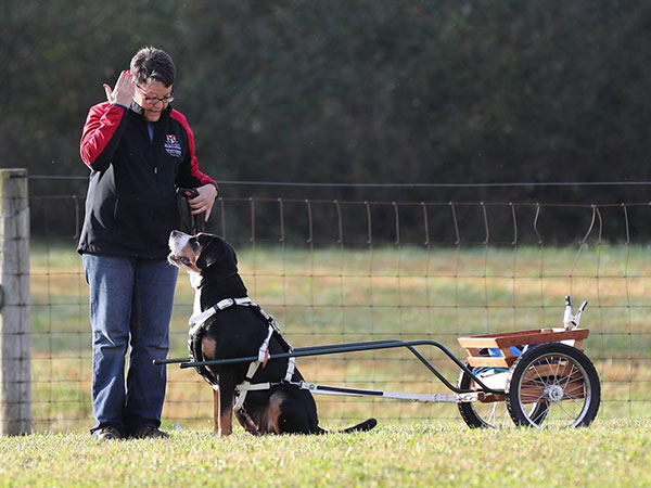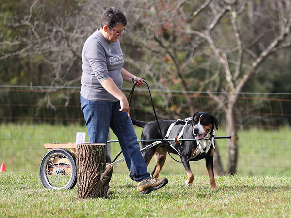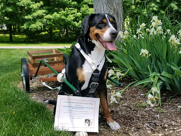 She's a great worker and has earned her Rally Novice and Advanced titles, her Beginner Novice, and Novice Obedience titles as well as her novice pack dog title. In May 2018 she earned her Novice Draft Dog title as well - which earned her her Versatility Greater Swiss title! The week after that she finished up her last major and earned her Championship as well!!