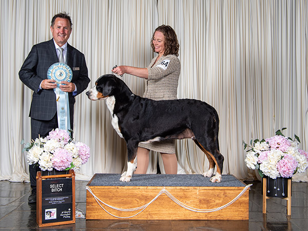 Sesame unfortunately didn't attend the 2024 GSMDCA National; but, she did get to attend in 2025 and earned Select Bitch at the NS along with helping to earn Cherished Swissies the 'Best In Breeder's Class' for the 3rd year in a row and also won 1st in a HUGE generations class with her mother, Shiver, and daughter, Sashay.