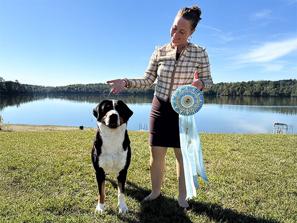 She made a few appearances as a special in fall 2023 and made us proud in very limited showing! She took several OH group placements in addition to a Group 4. The 2023 GSMDCA NS was a real shining point for Sesame though...there was an independent show prior to the National with a hug entry and then the NS itself later in the week. Sesame was consistent and won OHBOB (owner handled best of breed) and BOS (best of opposite sex) at both the Independent regional show as well as at the National. She also helped to earn Cherished our 2nd 'Best in Breeder's Class' win with the help of Archer & Badger. To wrap up the year she won Best of Opposite Sex at the very prestigious AKC National Championship show in Dec 2023.